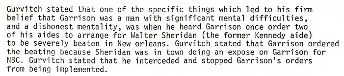 Here is the HSCA Outside Contact Report with William Gurvich, who worked for Jim Garrison for a while but then quit when he realized the investigation was a fraud.